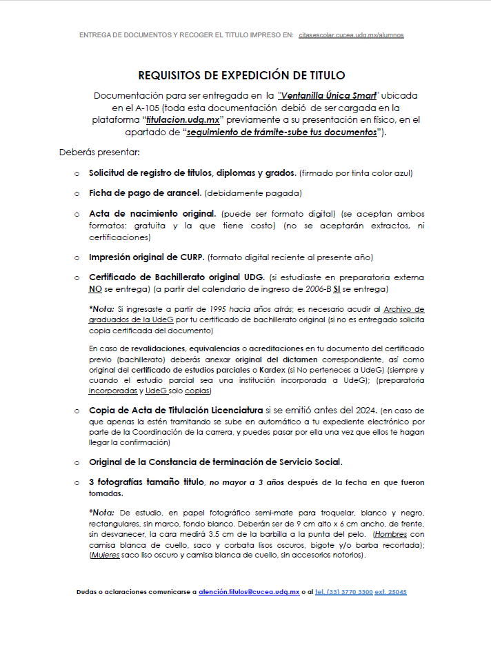 Una vez elegida y aprobada la modalidad de titulación, te dejamos a continuación los requisitos para iniciar el tramite de Acta de Titulación.